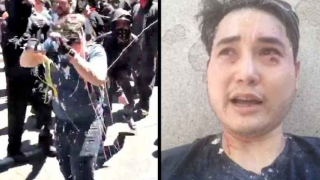 In a video shot after the attack, a bleeding Ngo explains that his attackers made off with his camera. “I just got beat up by the crowd—no police at all—in the middle of the street and they stole my GoPro,” he said. “They punched me several times in my face and head. I’m bleeding.”