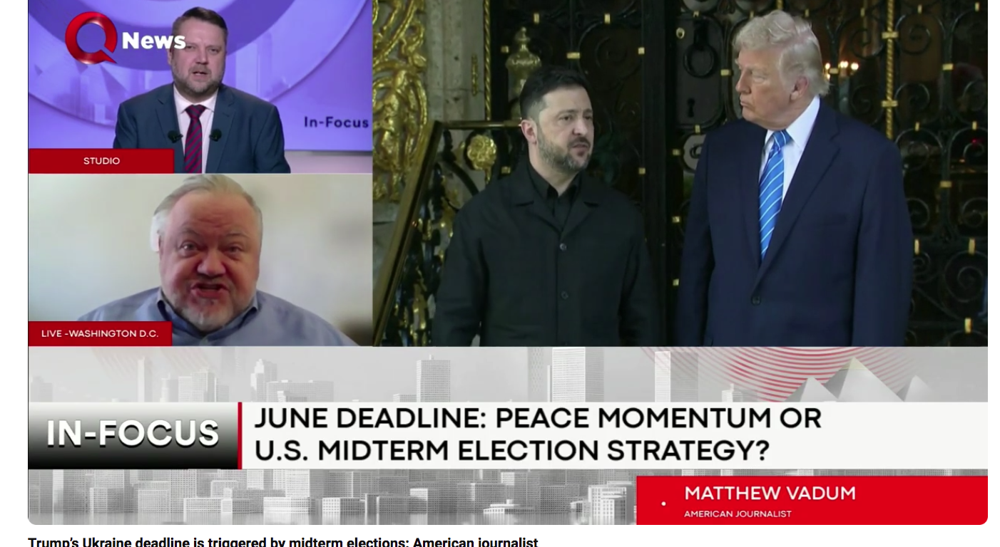 I appeared on QNews in Egypt on Feb. 9, 2026, discussing whether President Trump’s desire for a peace deal between Ukraine and Russia by June is driven by a desire to have a win before the Republican Party faces voters in the midterm congressional elections in November.