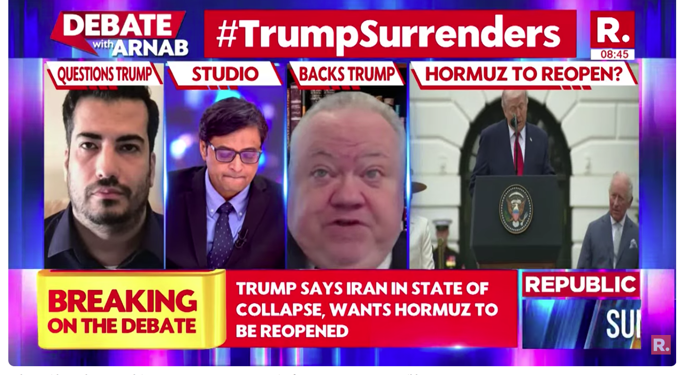 I was on “The Debate with Arnab” on April 28, 2026, on Republic TV in India. (Host Arnab Goswami is reportedly the biggest TV journalist in India.)