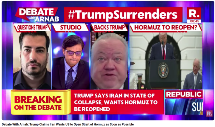 Vadum talks Trump, Iran war on Republic TV in India